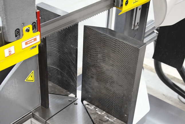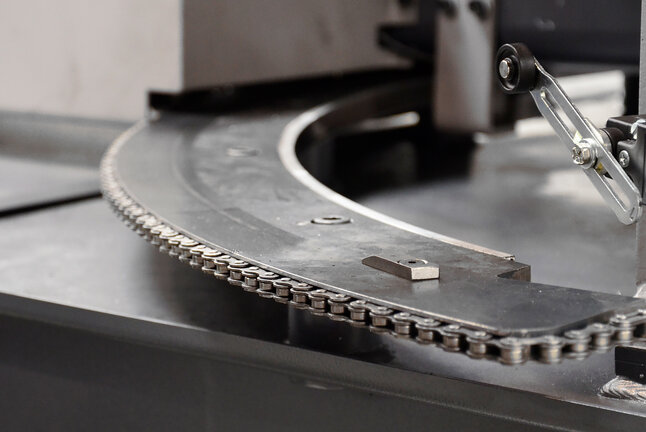 • Veľké, presné prizmatické vedenie nastaviteľného vodiaceho ramena pílového pásu