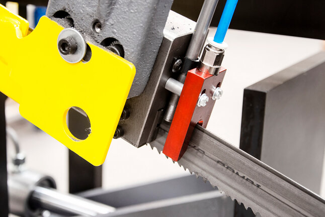 Štandardné vybavenie stroja už zahŕňa plynule regulovateľný a výkonný pohon pílového pásu, presné tvrdokovové vedenie pílového pásu, automatickú reguláciu prítlaku do rezu, digitálny ukazovateľ uhla rezu, digitálny ukazovateľ rýchlosti pásu, poháňaný kartáč na odstraňovanie pilín, voľne umiestniteľný ovládací pult, hydraulický plnozdvihový zverák, elektronickú kontrolu napnutia pílového pásu a jeho roztrhnutia, nastavenie výšky ramena pomocou funkcie Memory z ovládacieho pultu, veľké poháňacie a napínacie kolo pre maximálnu životnosť pílového pásu, výkonný hydraulický agregát a moderné riadenie s jednoduchým ovládaním a textovou diagnostikou stroja na osvetlenom displeji. K stroju je k dispozícii široká ponuka prídavného vybavenia ako valčekové dopravníky a dorazy, systém minimálneho mazania, zariadenie LaserLiner a zariadenie na upínanie zväzkov materiálu.