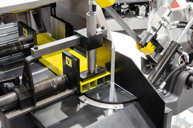 Posuv materiálu do rezu je automatický. Presné tvrdokovové vedenie pílového pásu, kĺb ramena uložený v predpätých kuželíkových ložiskách a synchrónne bežiaca kefa na odstraňovanie triesok sú predpokladom pre vynikajúci rezný výkon. Robustné liatinové rameno píly prispieva (v porovnaní so zvarenou konštrukciou) k lepšiemu pohlcovaniu vibrácií pri rezaní. Rýchlosť pílového pásu je plynule regulovateľná v rozmedzí od 20 m/min do 120 m/min, čo významne zvyšuje životnosť pílových pásov aj produktivitu stroja.