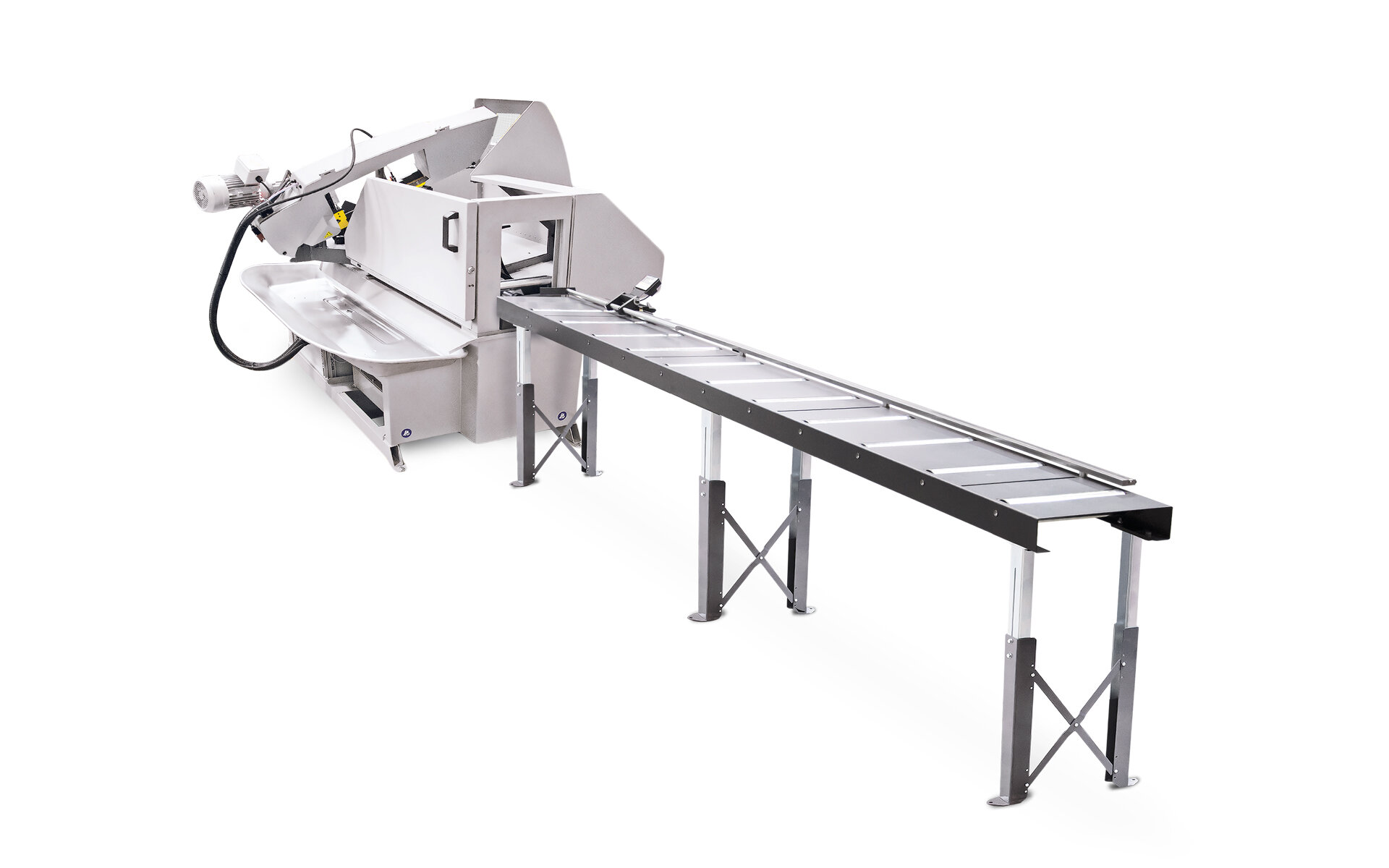 Plne automatická pásová píla s možnosťou obojstranných uhlových rezov s automatickým polohovaním ramena. Hydraulicky je ovládaný posuv materiálu do rezu, upínanie materiálu a posuv ramena pílového pásu do rezu a späť. Dĺžka jedného podania je 1500 mm. V spojení s najvyššou možnou polohovacou rýchlosťou je tak zaručená doposiaľ nedosiahnuteľná produktivita a flexibilita. Po naprogramovaní počtu kusov, dĺžky a uhlov na každej strane kusu sa vykoná celý pracovný cyklus. Riadiaca jednotka B&R je vybavená veľkým prehľadným displejom. Programovanie sa vykonáva v jednoduchých krokoch a používateľ má o ňom vďaka grafickému zobrazeniu jednotlivých úsekov dobrý prehľad. Opakujúce sa údaje o jednotlivých kusoch je možné uložiť do riadiacej jednotky stroja av prípade potreby ich načítať. Do riadiacej jednotky je možné uložiť až 60 programov. Pri prepnutí stroja do ručného režimu je možné ovládať všetky funkcie stroja oddelene. Robustné rameno je vyrobené zo šedej liatiny čo prispieva k lepšiemu pohlcovaniu vibrácií pri rezaní, než pri zvarenom ramene. Presné tvrdokovové vedenie pásu, kĺb ramena píly uložený v predpätých kuželíkových ložiskách, 27 mm vysoký pílový pás a synchrónne bežiaca kefa na odstraňovanie triesok sú predpokladom pre vynikajúci rezný výkon.